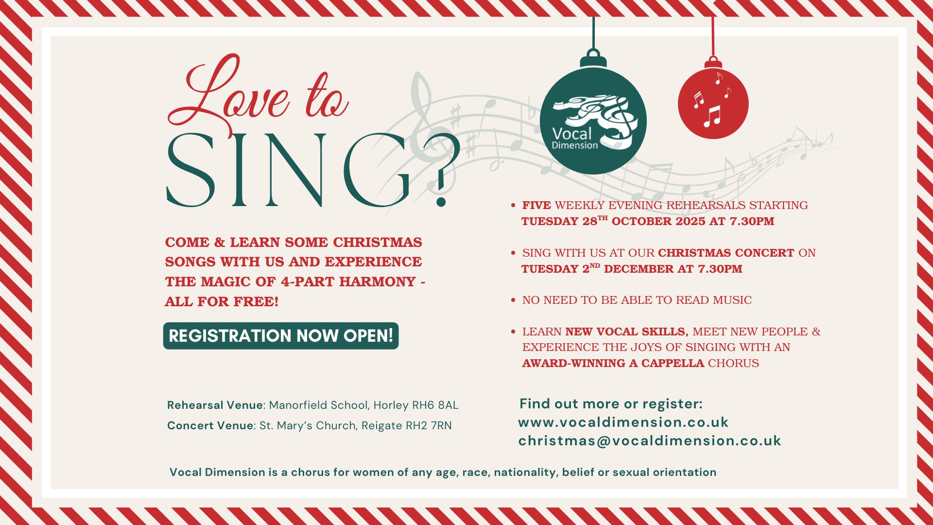 You will have the opportunity to sing at our Christmas concert on Tuesday 2nd December at 7.30pm at St Mary’s Church in Reigate.